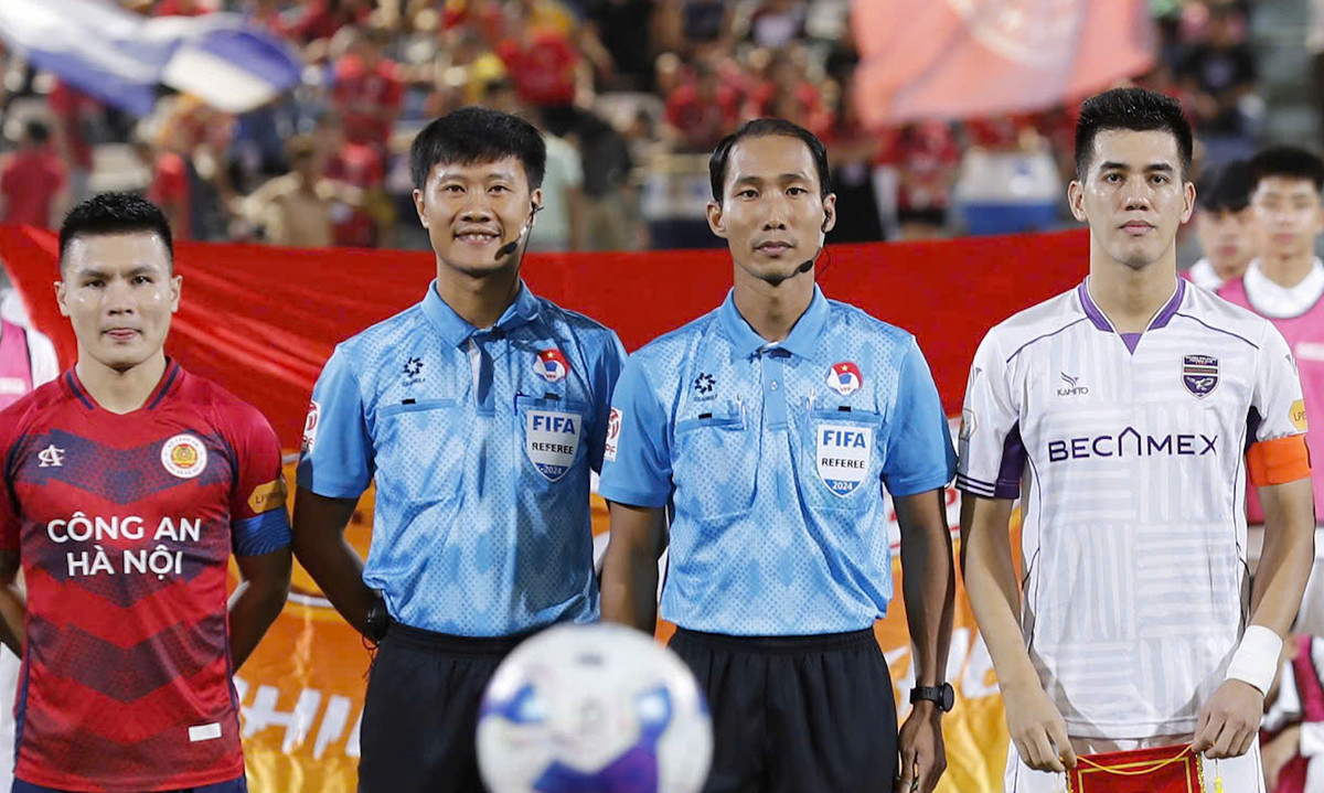 Trọng tài Lê Vũ Linh (thứ hai từ phải sang) không làm nhiệm vụ ở vòng 4 V.League 2024-2025.