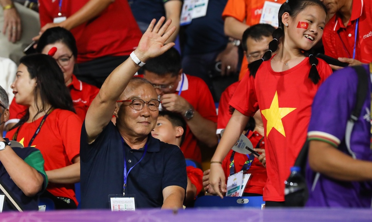 HLV Park Hang Seo đến xem U22 Việt Nam thi đấu ở SEA Games 32. (Ảnh: Đức Minh)