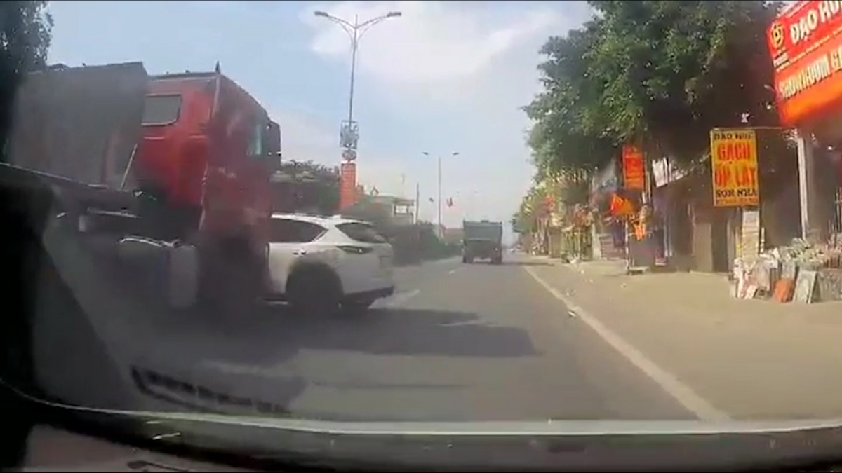 Cố vượt container, ô tô bị tông xoay 180 độ