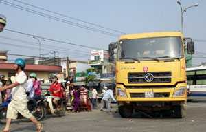 Thấy nhân viên trạm gác tàu tại đây đang kéo gác chắn chuẩn bị có tày chạy, ông Mốt cố đạp vượt qua để khỏi phải chờ tàu thì bất ngờ bị xe ben BKS 43C-014.72 đi từ Tôn Đức Thắng rẽ về đường Trường Chinh tông trực diện.