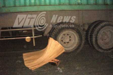 | Nạn nhân bị bánh xe container cán qua chết tại chỗ. Ảnh: Phan Cường |
