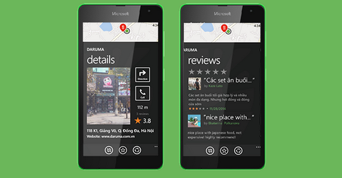 Đối với từng địa điểm, người dùng có thể xem ảnh chụp cửa hàng, gọi điện thoại (nếu có số điện thoại), xem địa chỉ website, hướng dẫn đường đi trên bản đồ, đánh giá và xếp hạng từ những người dùng khác.