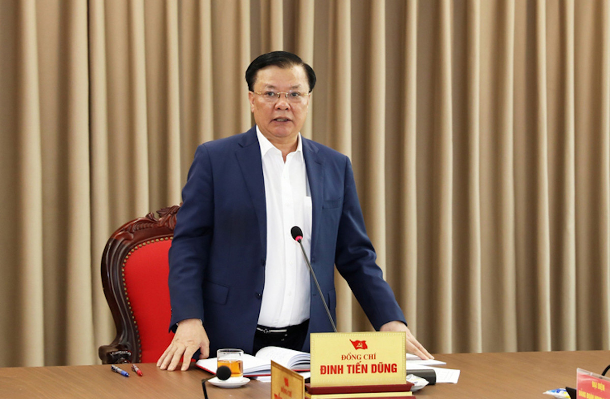 Bí thư Thành ủy Hà Nội Đinh Tiến Dũng phát biểu chỉ đạo tại buổi làm việc.