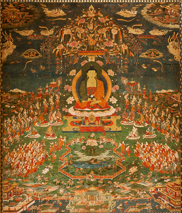 Tranh vẽ Phật A Di Đà ở cõi Tây phương cực lạc (xuất xứ Tây Tạng khoảng năm 1700) được trưng bày tại Bảo tàng Nghệ thuật San Antonio.