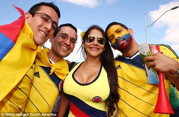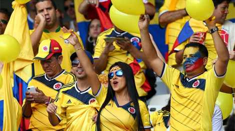 | Các CĐV Colombia léo cờ vào SVĐ Estadio Mineirao |