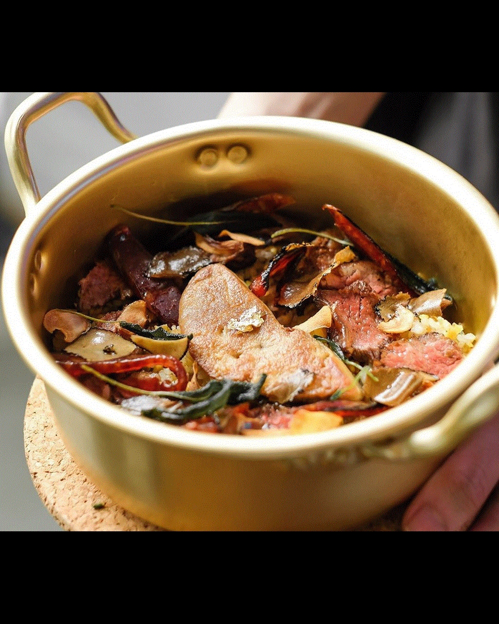 Cơm chiên Tỷ Phú được chế biến từ những nguyên liệu đắt đỏ như gạo Nhật, bò Mỹ Black Angus, gan ngỗng, nấm Truffles, lạp xưởng Hong Kong cùng một miếng vàng dát mỏng phủ lên trên.