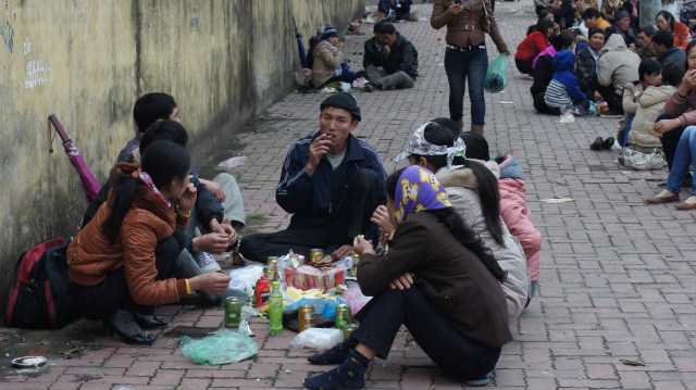 Nhóm bạn trẻ từ Hà Nội tới Bắc Ninh cũng ăn uống ngay tại núi Lim để tham dự hội đến chiều tối.