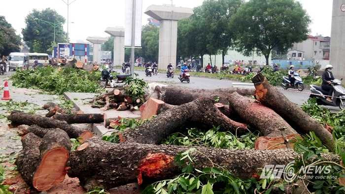 | Cây cổ thụ bị chặt trên đường Nguyễn Trãi (Ảnh: Minh Chiến) |