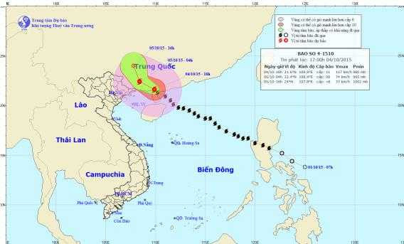 Dự báo trong 12 giờ tới, cơn bão số 4 di chuyển theo hướng Tây Tây Bắc, mỗi giờ đi được khoảng 20km. Đến 04 giờ ngày 5/10, vị trí tâm bão ở vào khoảng 22,4 độ Vĩ Bắc; 108,4 độ Kinh Đông, trên khu vực phía Nam tỉnh Quảng Tây (Trung Quốc). Sức gió mạnh nhất ở vùng gần tâm bão mạnh cấp 8 (tức là từ 60 đến 75km một giờ), giật cấp 9-10.