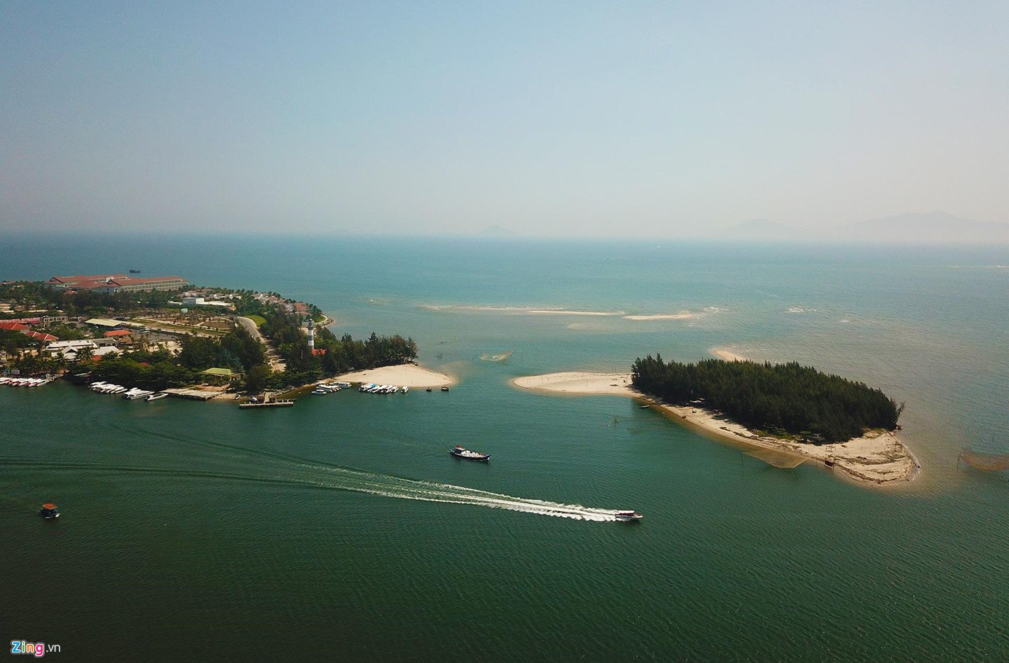 Cồn cát hình dáng khủng long mới xuất hiện ngoài khơi Cửa Đại nhìn từ flycam