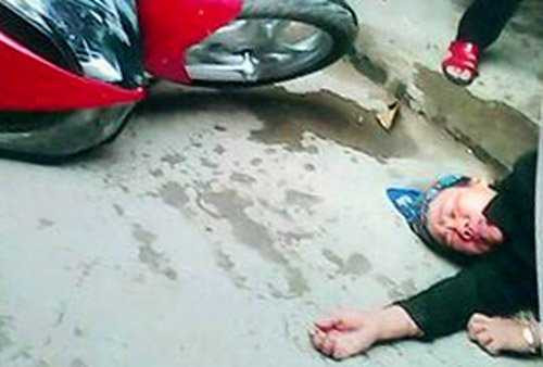 | Bà Lợi bị đánh nằm bất tỉnh dưới nền chợ Đầu Đê. |