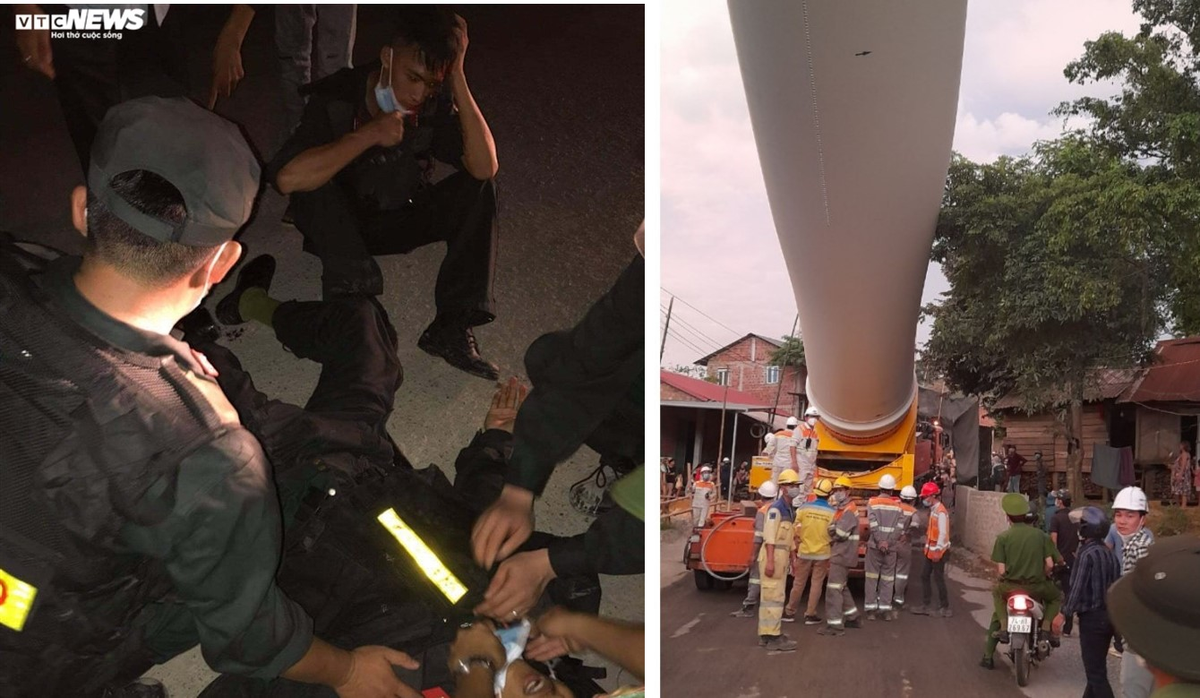 Khi chủ đầu tư dự án điện gió đang chuẩn bị thương lượng với một hộ dân khác thì có rất đông người dân la ó, ném đá, vỏ bia... vào lực lượng chức năng khiến nhiều cán bộ công an bị thương phải nhập viện.