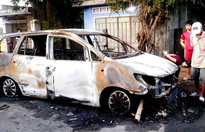 Khi xe chữa cháy của Cảnh sát PCCC Bình Định đến hiện trường dập lửa, chiếc ô tô này đã bị thiêu rụi. Vụ hỗn chiến khiến hai thanh niên bị thương nặng phải đưa đến bệnh viện cấp cứu.