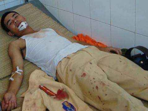 | Thiếu úy Hiếu bị người đi đường tấn công gây thương tích |