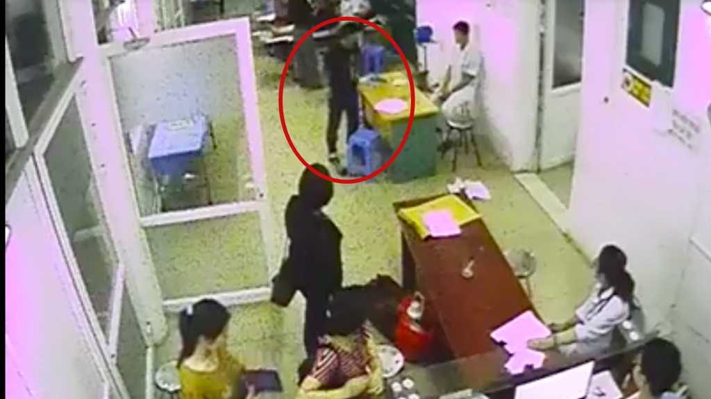 Người này tiếp tục cầm tập hồ sơ để trên bàn, ném vào mặt một nhân viên y tế đang trực tại đây. Lúc này, nhân viên bảo vệ của bệnh viện vào can thiệp nên nhóm này rời đi.