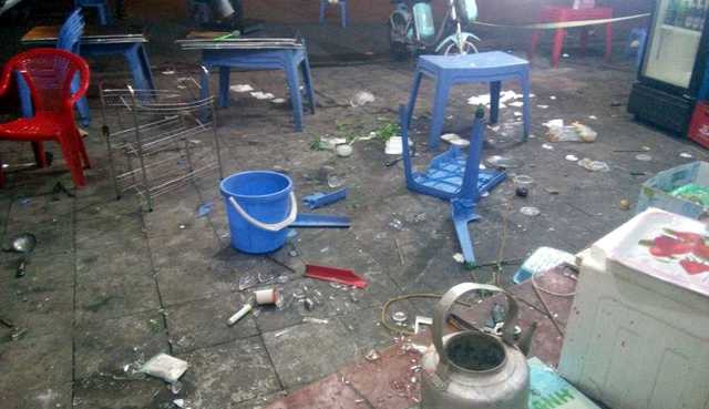 | Đồ đạc trong quán lẩu hư hỏng sau vụ xô xát |
