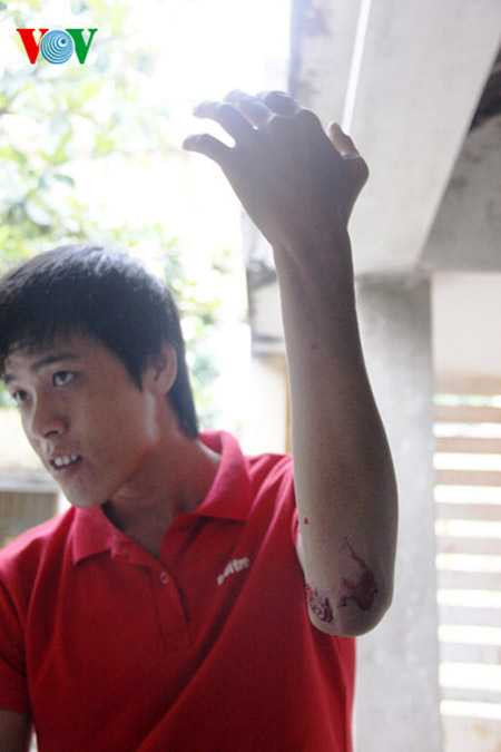 | Phóng viên Lê Ninh (bút danh Trần Mai), Báo Tuổi Trẻ với nhiều vết thương rướm máu do bị côn đồ hành hung |