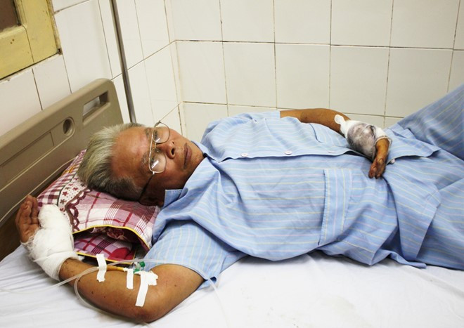 Các bác sĩ cho biết, ông lão bị chém đứt lìa ngón tay nên không thể phẫu thuật nối lại mà chỉ có thể băng bó, cầm máu và điều trị vết thương. Vết thương ở ngón tay cái bàn tay phải được khâu lại.