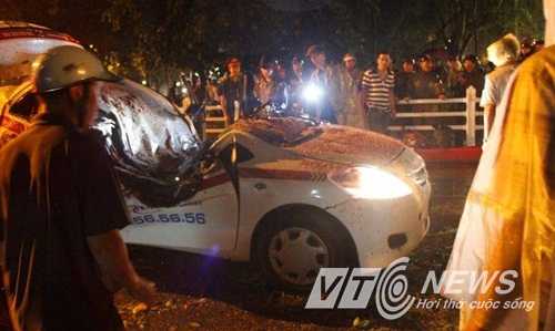 | Gió mạnh làm cây đổ, đè lên chiếc taxi đang lưu thông khiến tài xế thiệt mạng. |