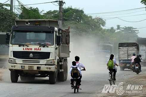 “Mù mịt bụi, xe chạy rầm rầm, trắng xóa cả đường” - chị Hương cho biết.