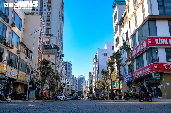 Hàng loạt cây lộc vừng được trồng mới dọc hai bên vỉa hè. Vị trí gốc cây được đóng cọc chống cố định để cây không nghiêng đổ. Đến nay, việc trồng cây xanh trên tuyến đường Vũ Trọng Phụng đang trong thời gian hoàn tất.