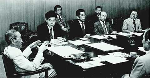| Ông Lee Kun-Hee trong cuộc họp với cố chủ tịch Samsung. Ảnh: Korea ITTimes. |