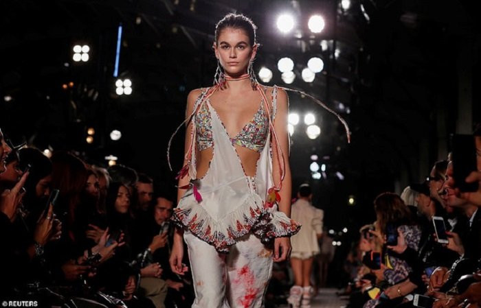 Trên trang cá nhân của nhà thiết kế Isabel Marant cũng đăng tải màn trình diễn của Kaia. Show thời trang còn có sự tham gia của các chân dài khác như Gigi Hadid, Irina Shayk, và Eva Herzigova.