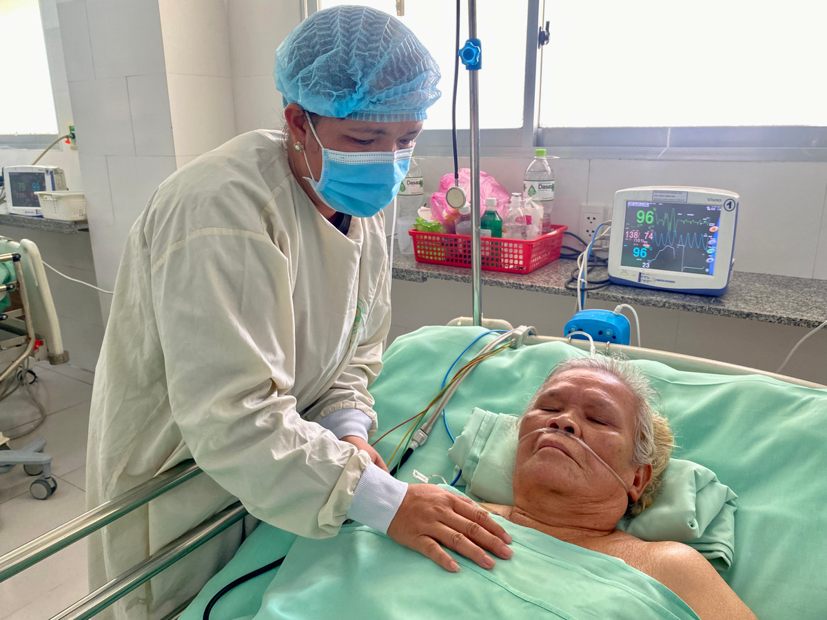 Bà Mậu đang được điều trị tích cực tại Bệnh viện Lê Văn Thịnh, TP.HCM. (Ảnh: Như Thuý)