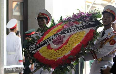 | Đoàn Trường Văn hóa Nghệ thuật Quân đội do Thiếu tướng, NSƯT, Nhạc sĩ Nguyễn Đức Trịnh, hiệu trưởng nhà trường vào viếng! |