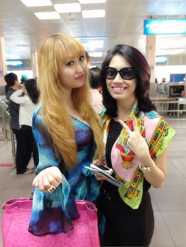 Phi Thanh Vân luôn tranh thủ khoe làn da mới được tắm trắng bóc và phong cách thời trang cực 'sến' của mình.
