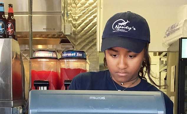 Cô con gái út, năm nay 15 tuổi của gia đình Obama đang làm việc trong cửa hàng hải sản Nancy's ở đảo Martha's Vineyard, nổi tiếng với hải sản chiên và kem sữa.