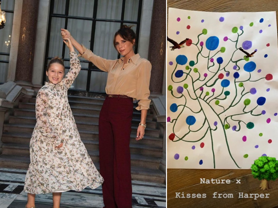 Theo Hello Magazine, Harper Beckham đã tập vẽ tranh trong lúc rảnh rỗi. Cô vẽ một cái cây đầy màu sắc. Victoria hào hứng chia sẻ bức tranh do con gái vẽ lên Instagram kèm chú thích: “Thiên nhiên và thật nhiều nụ hôn từ Harper”.