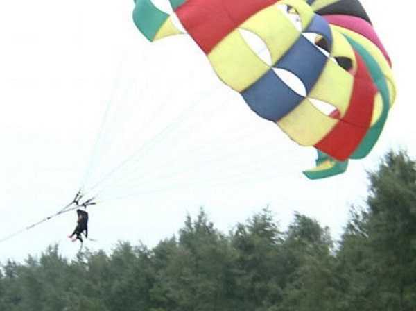 Con la hét, mẹ vẫn cột con vào dù bay cao 50m