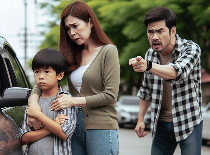 Chủ xe gặp phụ huynh của cậu bé để phản ánh nhưng thay vì bảo ban con mình, người mẹ liên tục bao biện rằng cậu bé ở nhà rất ngoan ngoãn. "Trẻ con nó biết gì đâu", đó là câu trả lời của chị cho hành vi dùng gạch vẽ lên chiếc ô tô mới tinh của hàng xóm.
