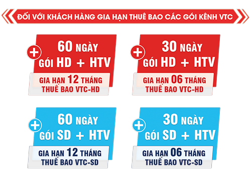 (VTC News) - Tặng đến 90 ngày sử dụng gói kênh VTC và 60 ngày gói 12 kênh HTV khi đăng ký MỚI hoặc GIA HẠN dịch vụ VTC HD, VTC SD từ ngày 10/8 đến 30/9/2014.