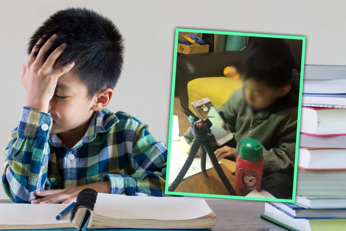 Cậu bé 9 tuổi tập trung và làm bài tập nhanh hơn khi mẹ livestream buổi học.