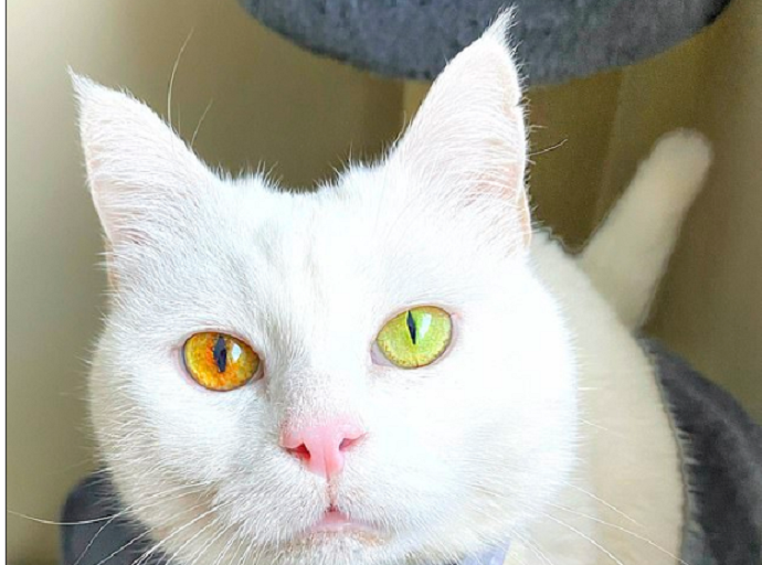Con mèo có hai màu mắt. (Ảnh: Cater News)
