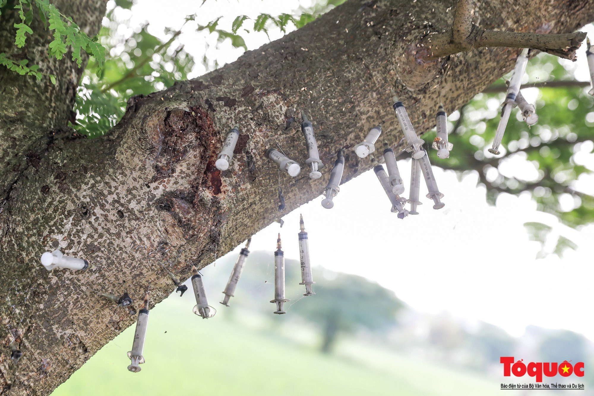 Đặc biệt có tới vài chục chiếc bơm kim tiêm, cũ, mới được các con nghiện cắm trên một thân cây trong nghĩa địa. Nó không khác gì một "biểu tượng" cho sự chết chóc đang hiện hữu, chất chồng ngay trên chính "cõi nghỉ" của những người đã khuất