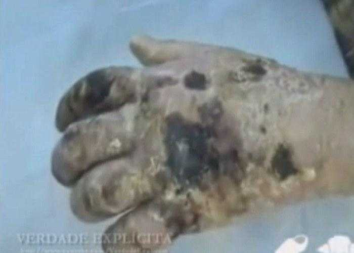 Được biết, Krokodil có giá rẻ hơn 3 lần so với heroin, thành phần chính của nó là chất codeine pha trộn với dầu hoả. Trong ảnh là bàn chân trái của bệnh nhân bị hoại tử sau khi sử dụng Krokodil.