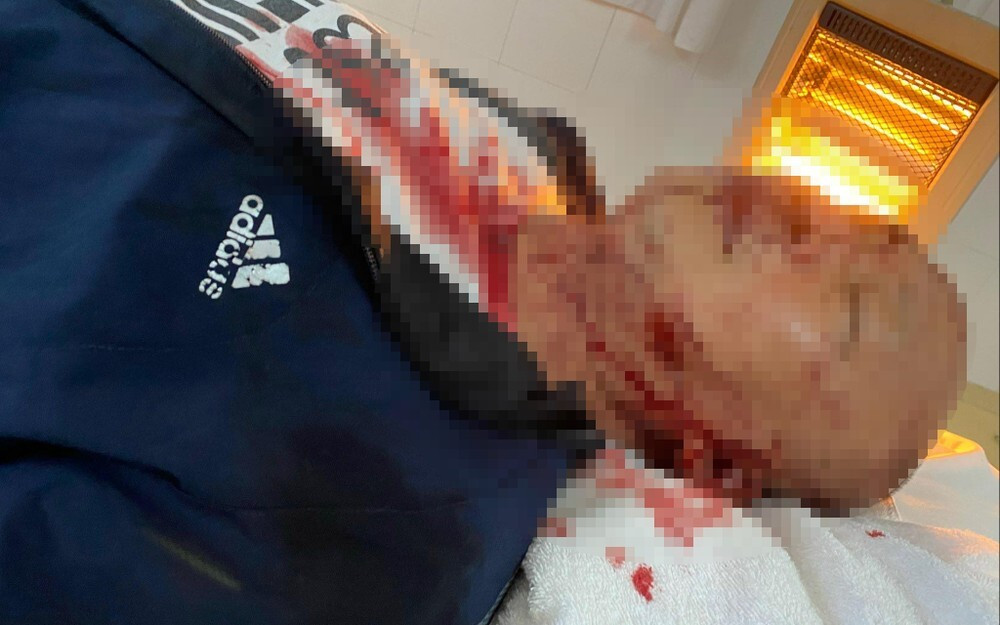 Anh Vũ Đức Hùng (giữa ảnh) chảy nhiều máu sau khi bị các đối tượng kéo vào góc khuất hành hung.