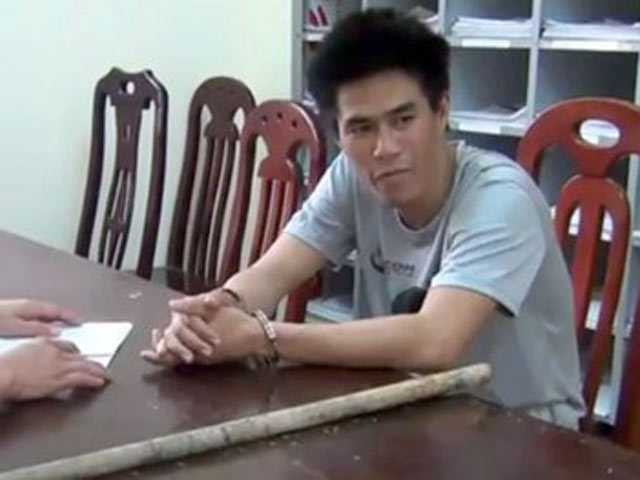 | Đối tượng Nguyễn Lương Hải cùng hung khí gây án tại cơ quan công an. |