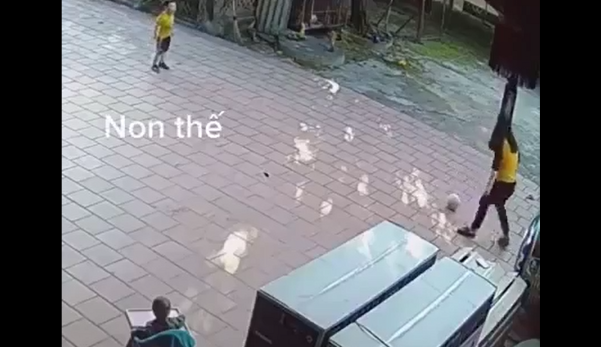 Vừa buông lời chê bai mẹ, cậu bé nhận ngay quả bóng trúng đầu, choáng váng.