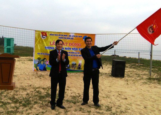 Ông Hà Quốc Phong, Phó Bí thư Thành uỷ TP Đồng Hới (bên trái) khi dự lễ phát động tháng thanh niên của Thành đoàn TP Đồng Hới. (Ảnh: T.Đ.Đ.H)
