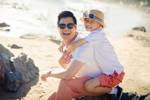 Bộ ảnh ghi lại những khoảnh khắc vui chơi rất đời thường của nam ca sĩ với cậu con trai cưng.