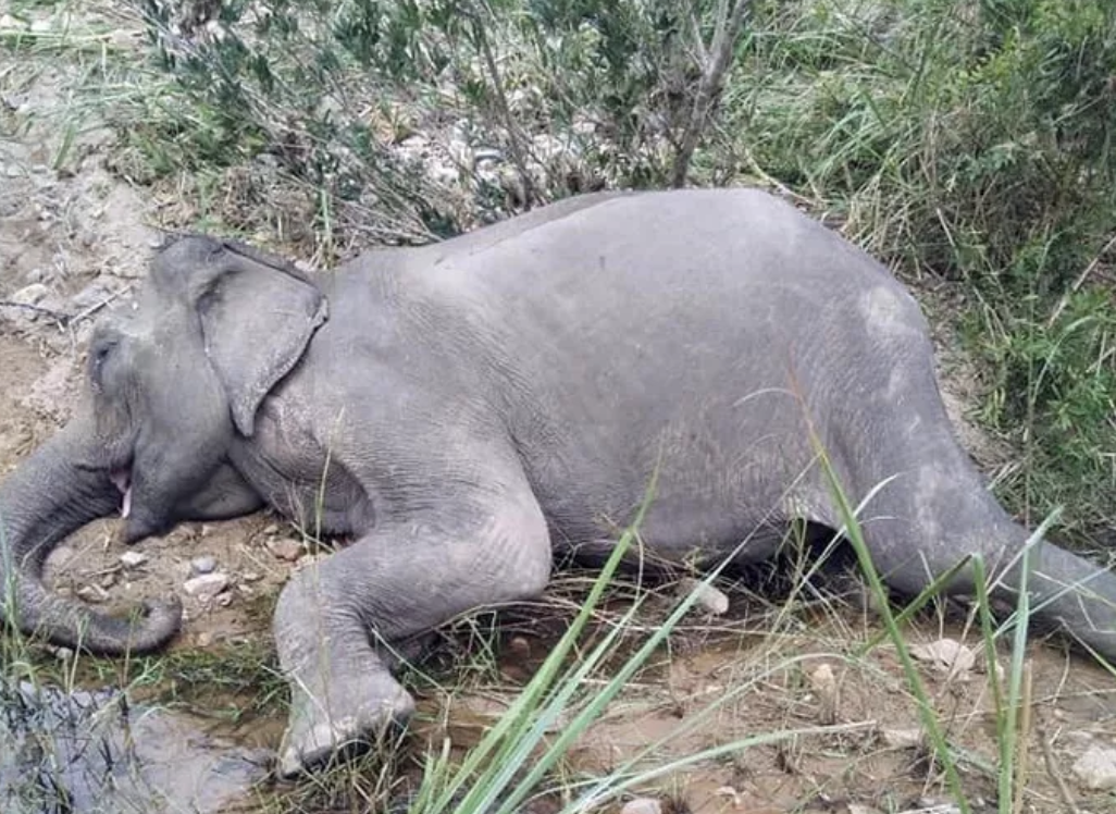 Voi Yẵ Tao chết bên bờ suối sau nhiều ngày chán ăn, mệt mỏi. (Ảnh: Khuất Nguyên)