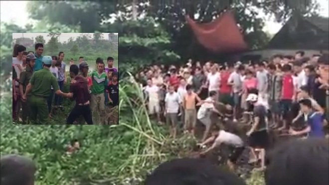 Trong khi đó, hàng trăm người dân đứng trên bờ chửi bới, thậm chí cầm gạch, cành cây ném xuống mương. Khi một tên trộm được đưa gần lên bờ, nhiều người dân bức xúc đã tiến lại đánh đập. Thậm chí, khi lực lượng công an xã tiến lại bảo vệ hai tên trộm thì người dân đã nhanh chóng bế công an đi chỗ khác.