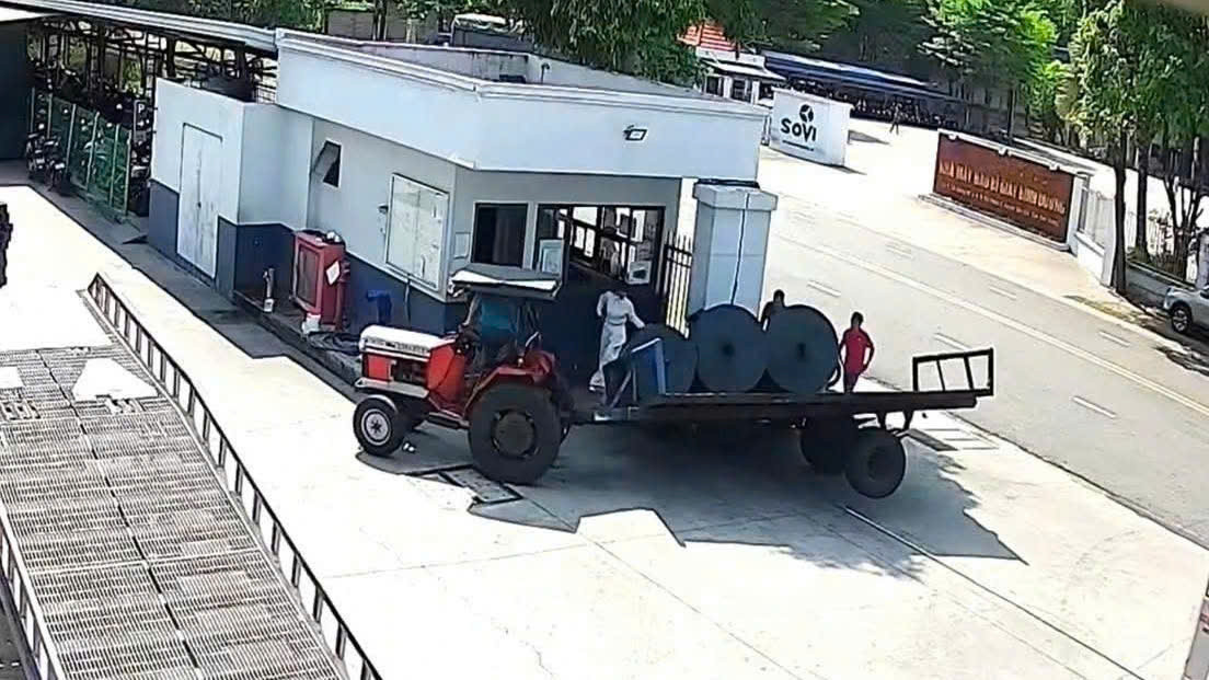 Đến 9h30, xe máy kéo sơ mi rơ moóc do tài xế Nguyễn Phạm Thành Trọng (công nhân của Công ty TNHH ITM), điều khiển, chở 3 cuộn vải chạy vào cổng.