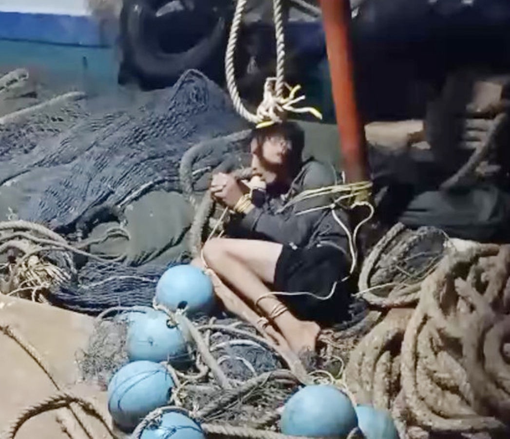 Hình ảnh được cho là ngư phủ bị trói trên tàu cá.(ảnh: http://cand.com.vn/)