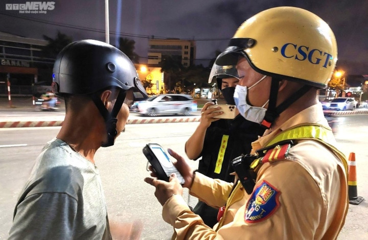 Lực lượng CSGT Công an Đà Nẵng kiểm tra nồng độ cồn. (Ảnh: Xuân Tiến)