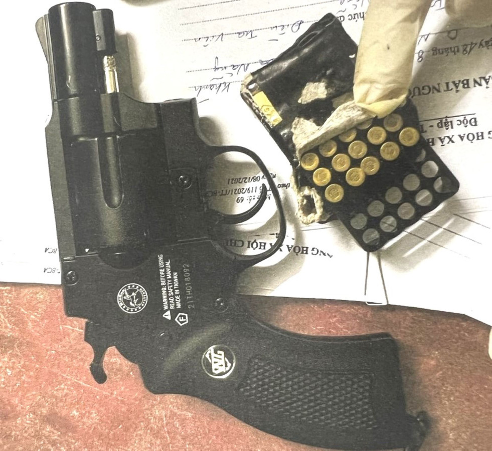 Súng và đạn được lực lượng công an thu giữ tại nơi ở của Hạnh.